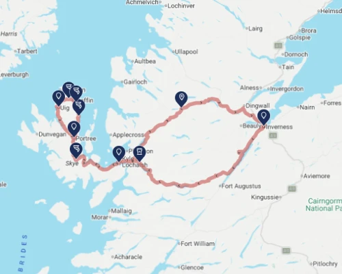 Day 2 starts from Inverness and ends in Inverness.