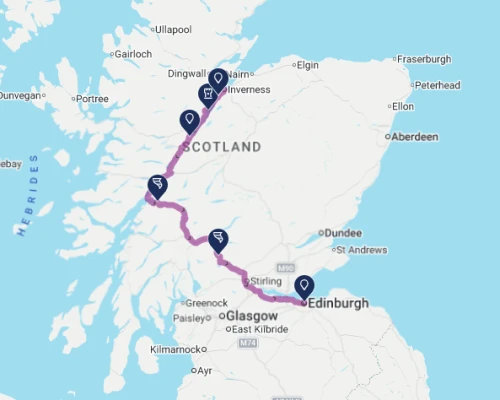 Day 1 starts from Edinburgh and ends in Inverness.